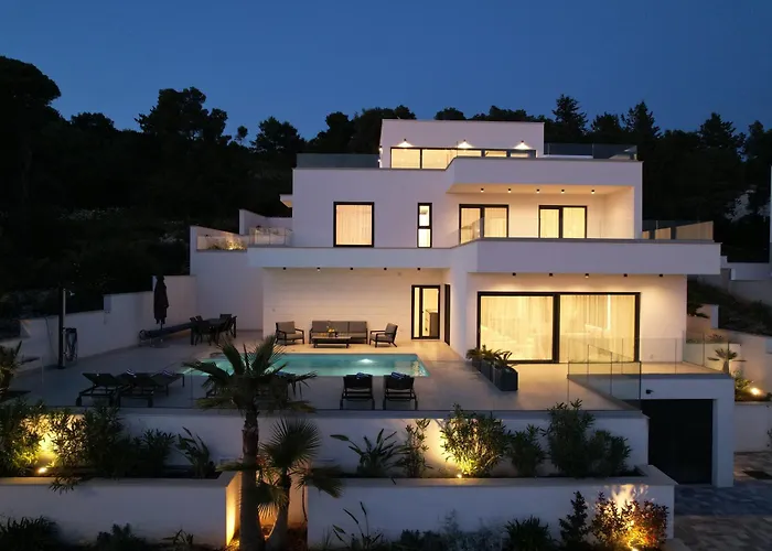 A Trogir városi villa egy 15 perces autóútra fekszik a Split repülőtértől és szomszédságában a Kamerlengo várvtól. A 6 fürdőszobás villa könnyű elérhetőséget biztosít olyan természeti csodákhoz, mint a Beach Vela Draga (3 km) és a Park Ex Fanfogna (1).